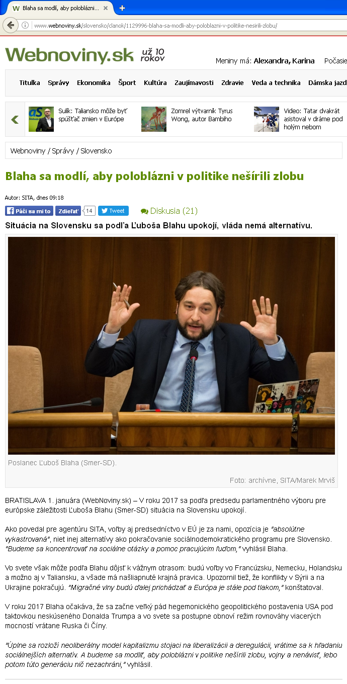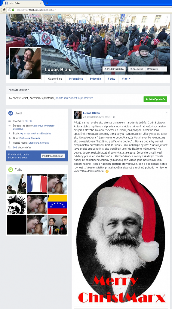 Poslanec NR SR za stranu SMER – SD Ľuboš Blaha 23. decembra 2016 napísal: